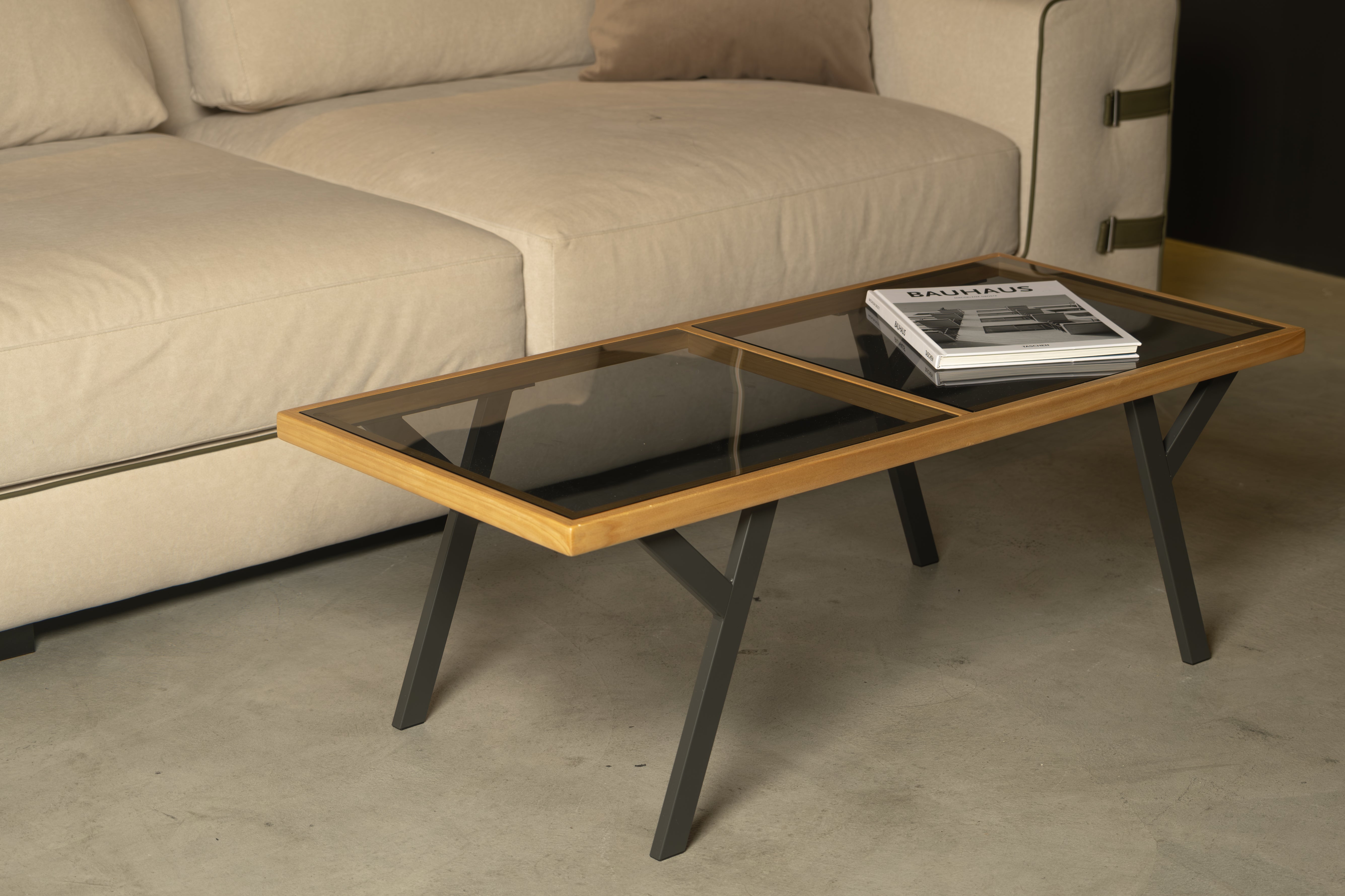 Much like its namesake, the Gossima Coffee Table is designed with this same spirit of gathering and interaction. The rectangular wood frame, strong yet refined, and the two sleek glass panels echo the balance of tradition and modernity. This table, though contemporary in form, carries the essence of those early parlor games—a space where conversation flows easily, and moments of connection are made.